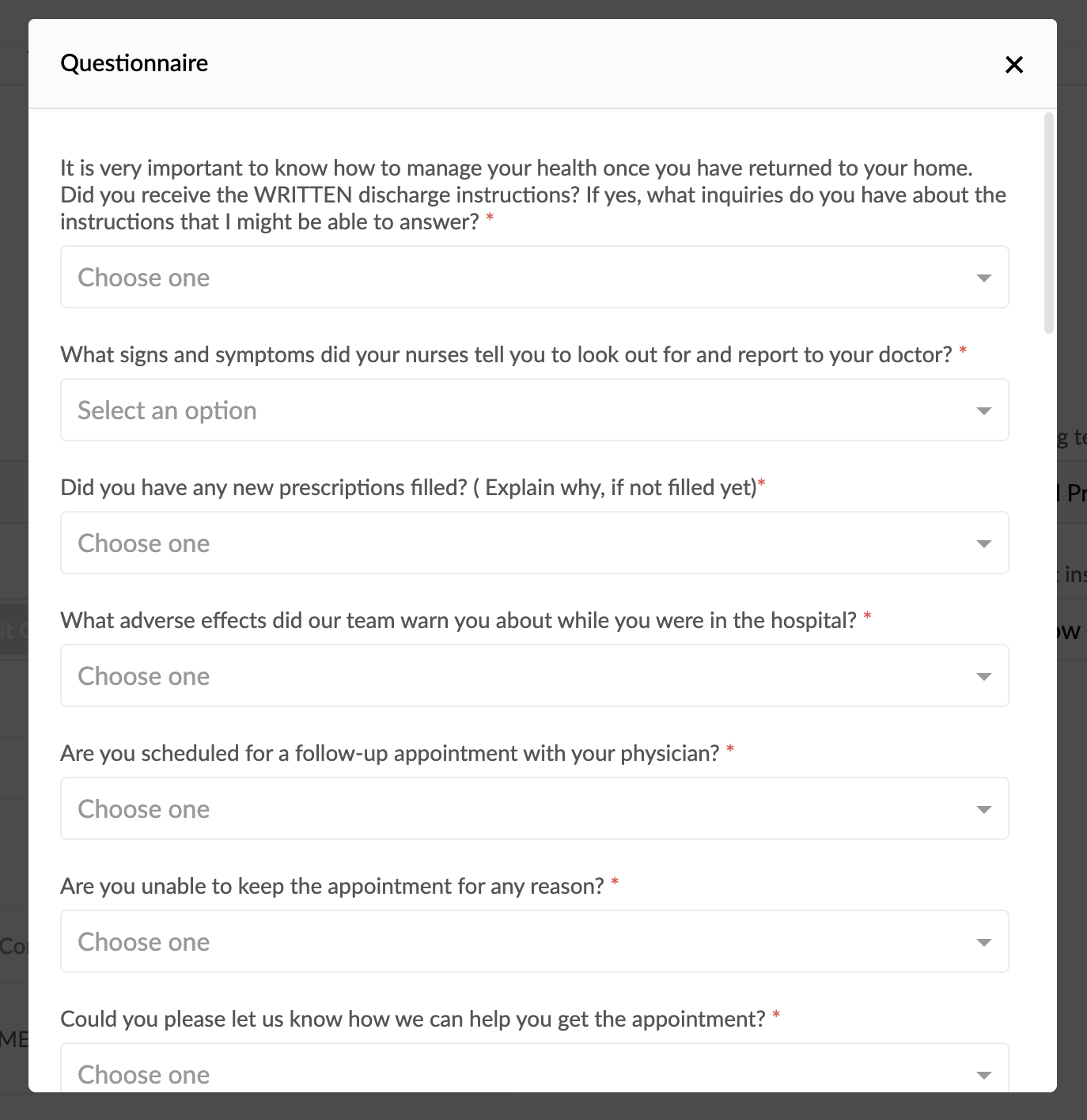 - You can view Consent, Discharge Info, Non Face to Face Interaction in all the sections, Questionnaire in Initial Communication.