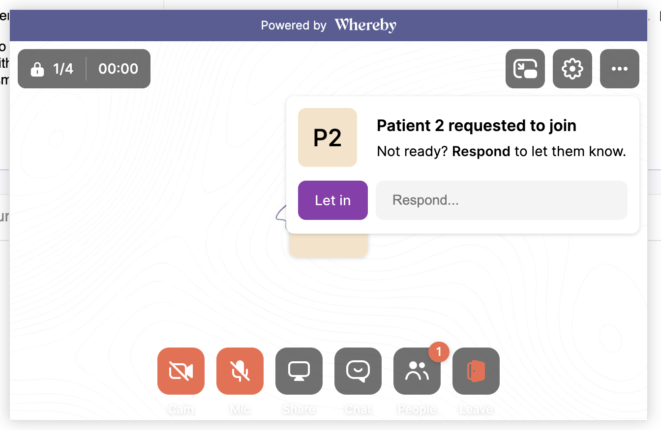 - When the patient requests to join the call, you will be asked to let the patient in as follows: