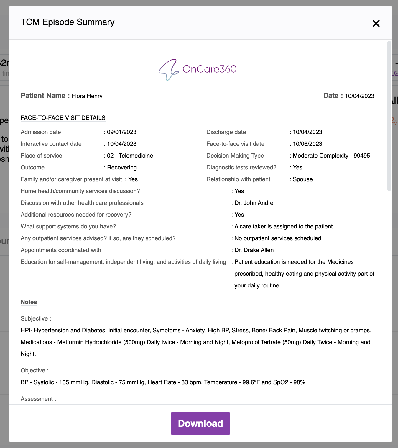- You can view and download the Episode Summary by clicking the eye icon. You can view the pop-up as follows: