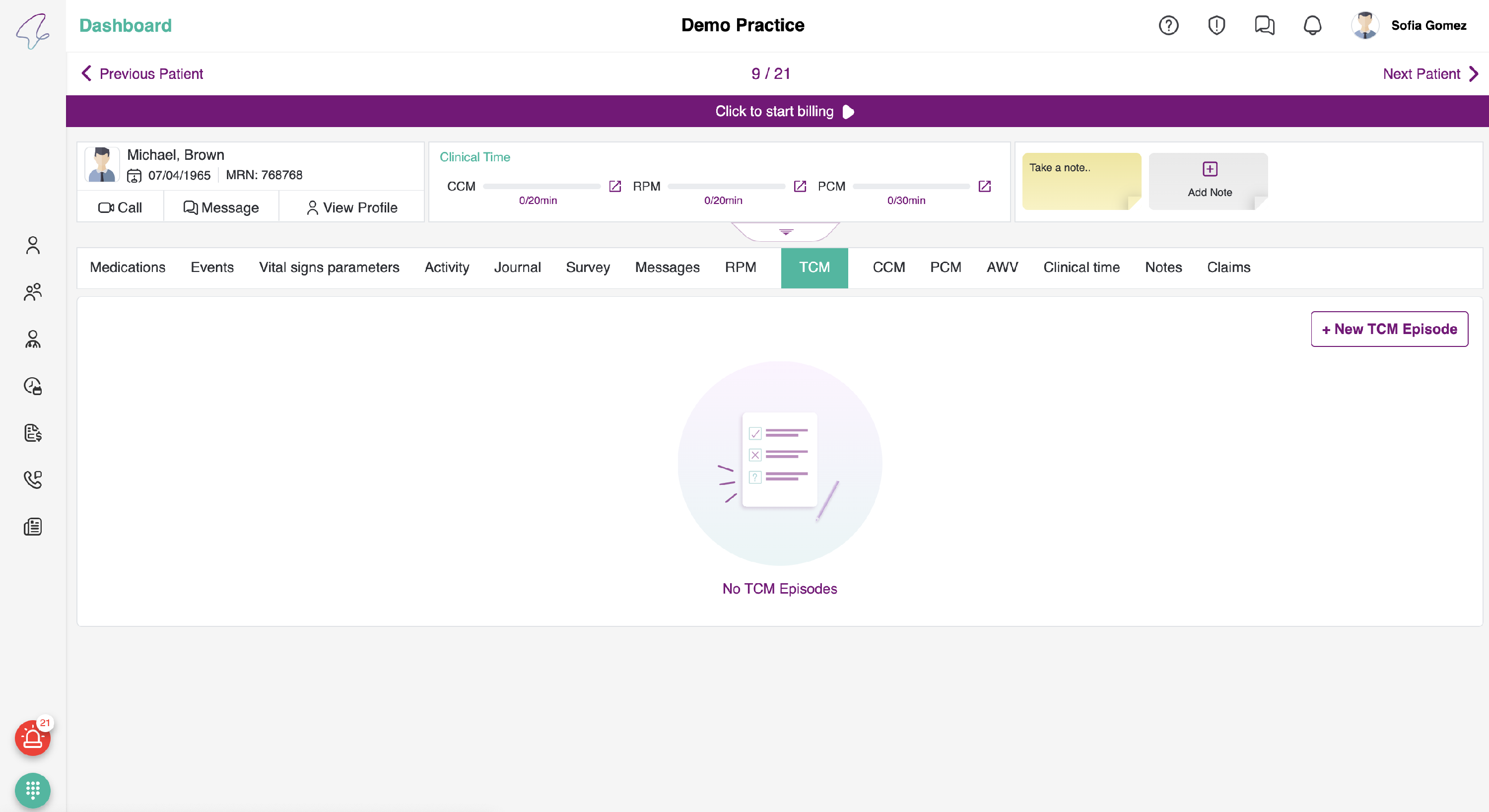 - To add TCM, go to Patient Dashboard. Click on TCM tab