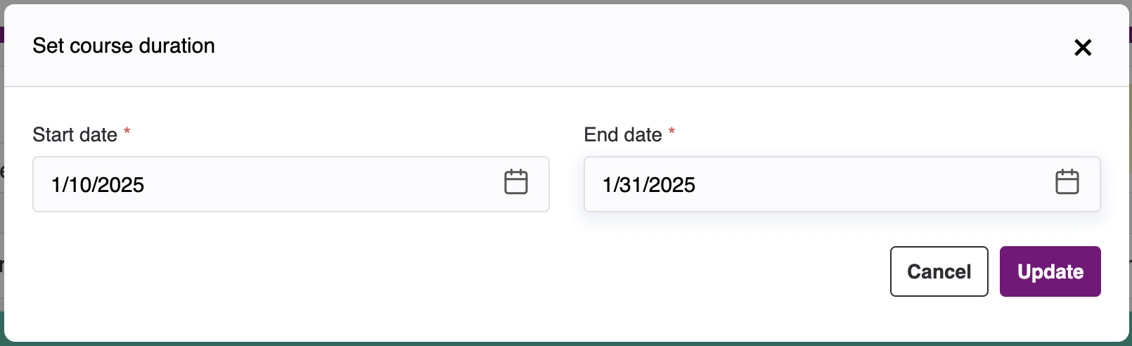 - If you want to make the medicine active again, you will be asked to set Course Duration again as follows. After you set the End Date, click on the Update button.