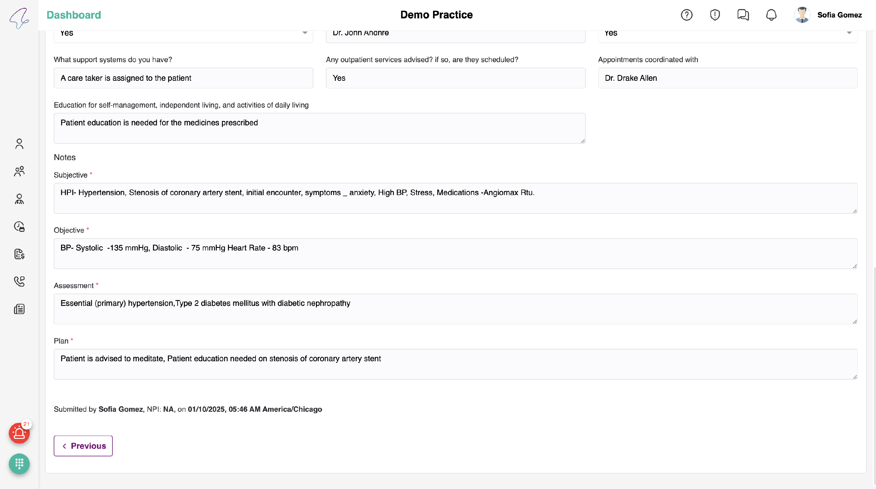 - Fill all the details, below in the Notes section, Assessment field will get the patient's diagnoses populated.