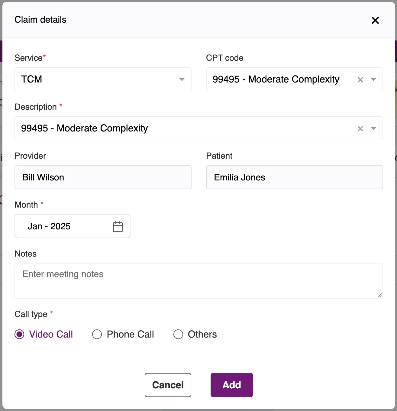 - If there are other calls associated with this TCM episode, click the Add Call button, and add information about each call.