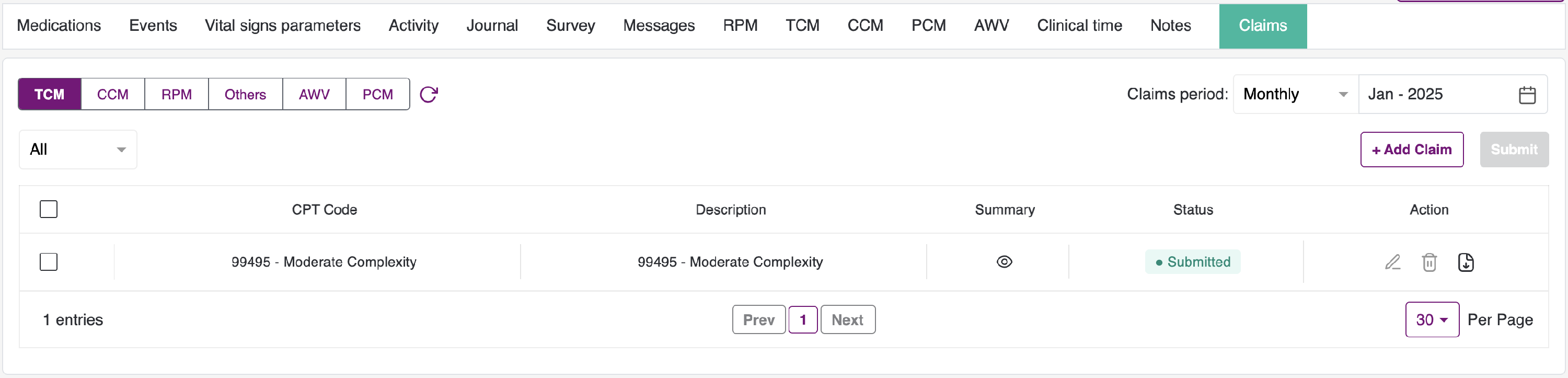 - There are 4 sub tabs - RPM, CCM, Others and TCM, billing logs for each program. Click on TCM tab.