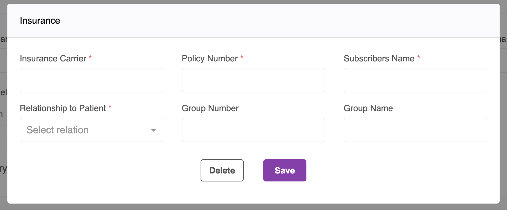 - Click on the Save button, to add this Insurance record. And, to delete it, click on Delete while adding or click on the delete icon on the record.