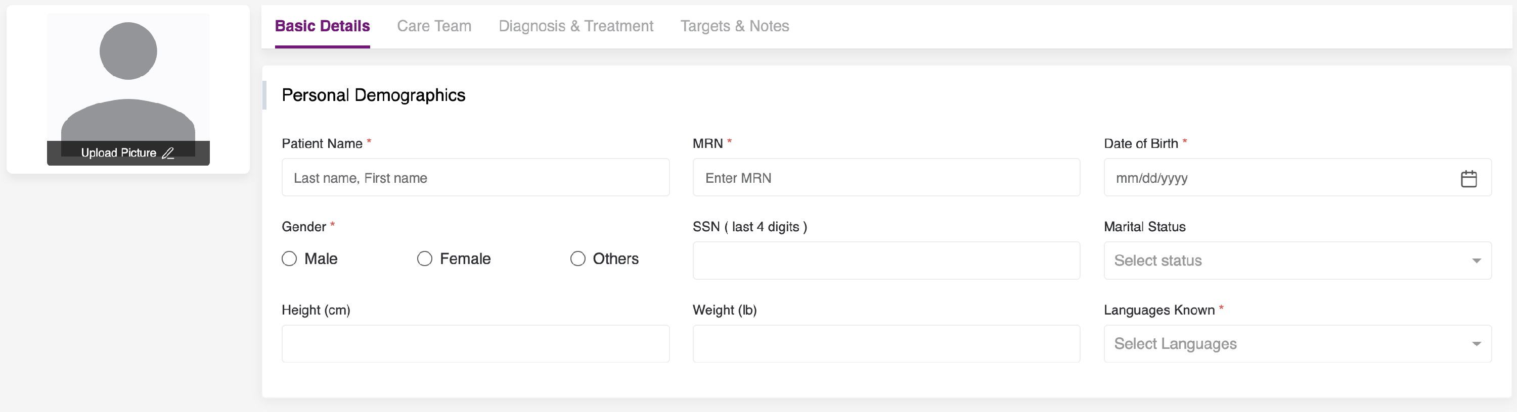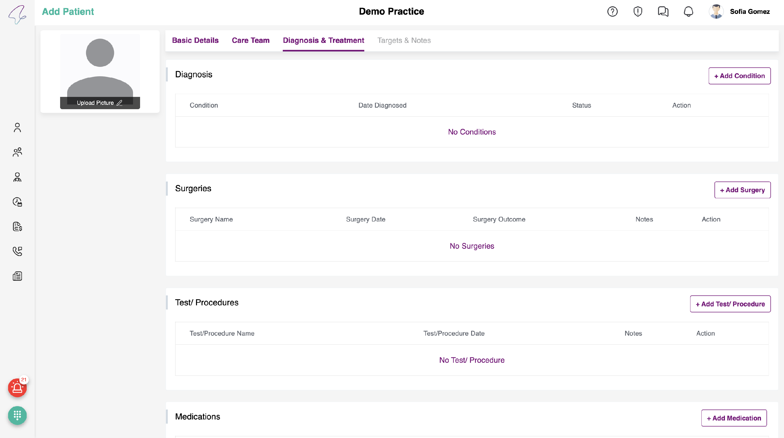 - Once all the fields are filled, click on Save & Continue to proceed. Diagnosis & Treatment Tab appears.