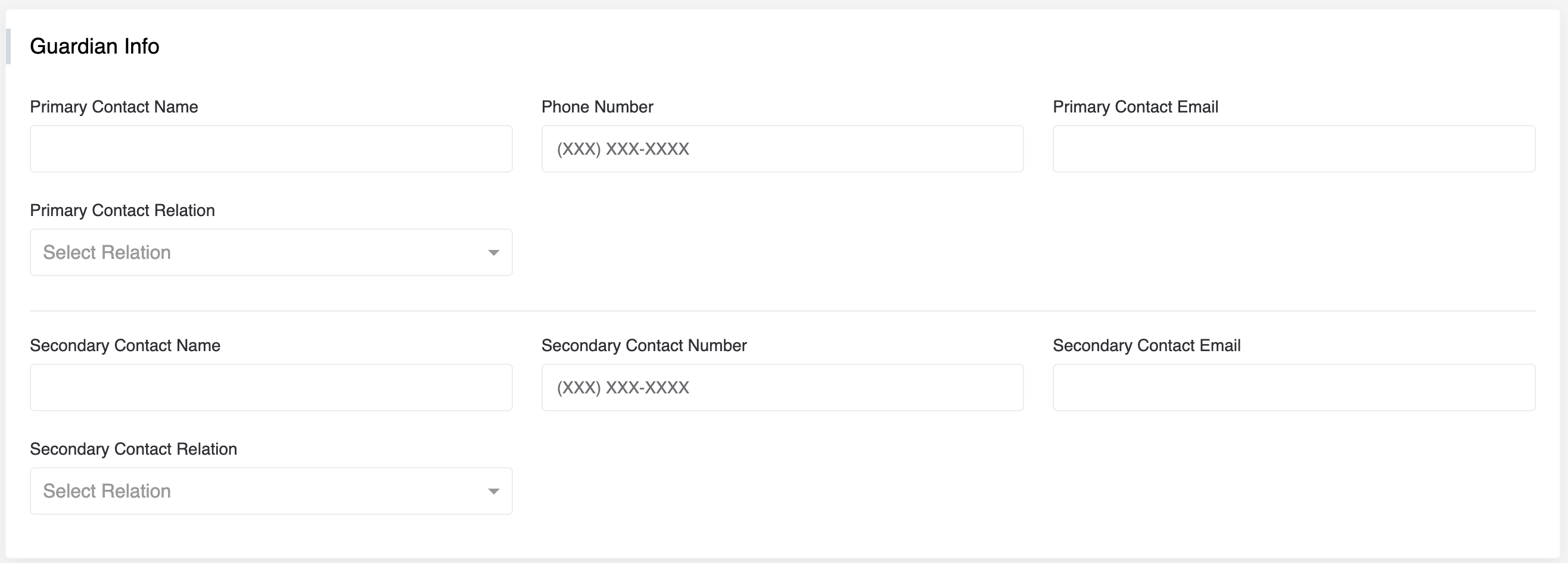 - Secondary Contact is optional it is for the Guardian Info.