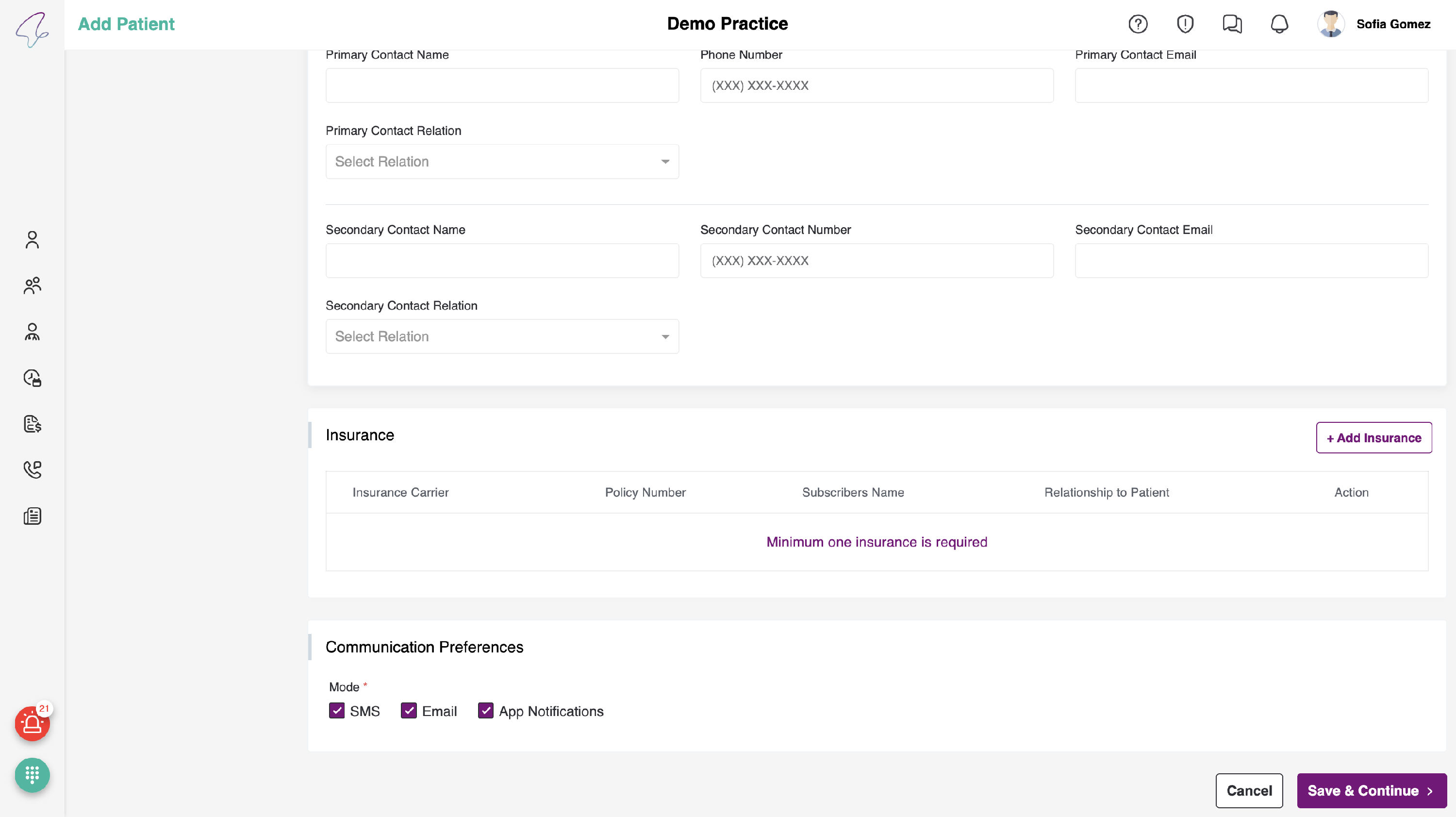 - In Communication preferences, Notifications are sent via SMS, Email and App Notifications, by default all the boxes will be checked.