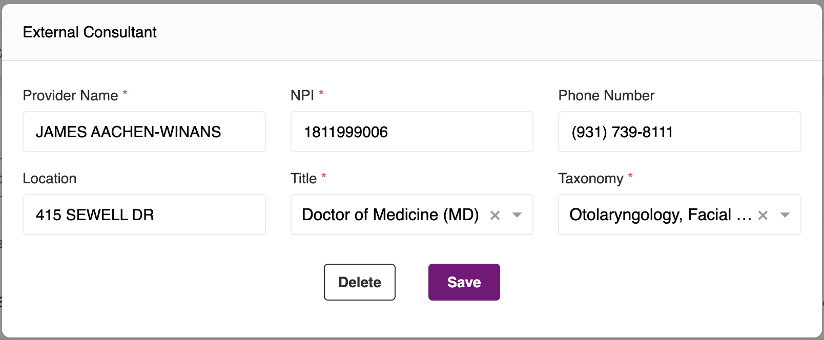- The details will get populated in the respective fields of External Consultant Pop-up as follows: