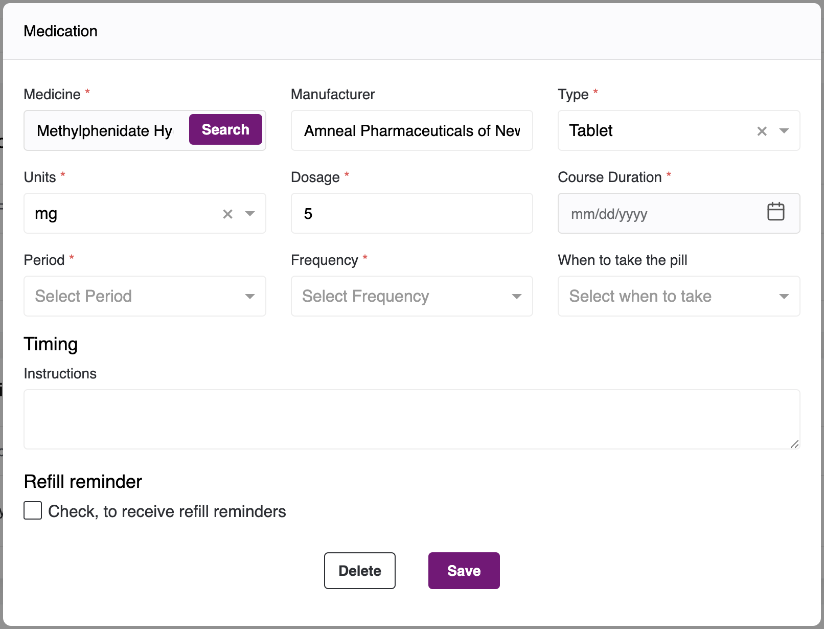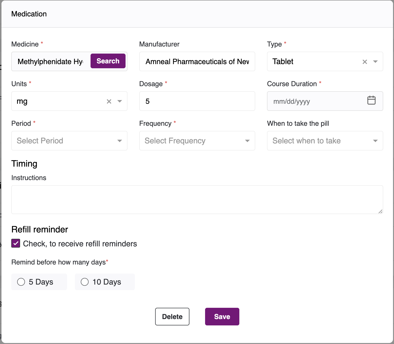 - You can also add Refill reminder, click on the checkbox, add a reminder.