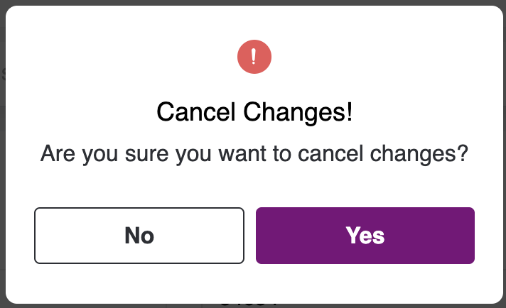 - Upon clicking the "Cancel" button, a pop-up will appear to verify that you want to cancel the changes you made.