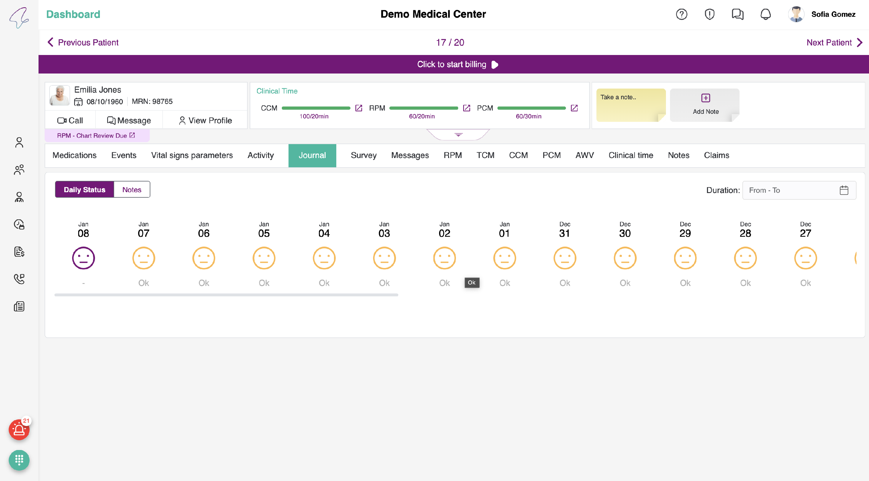 To view the patient's Journal, click on the briefcase icon in the Patient's listing - Quick Actions.
