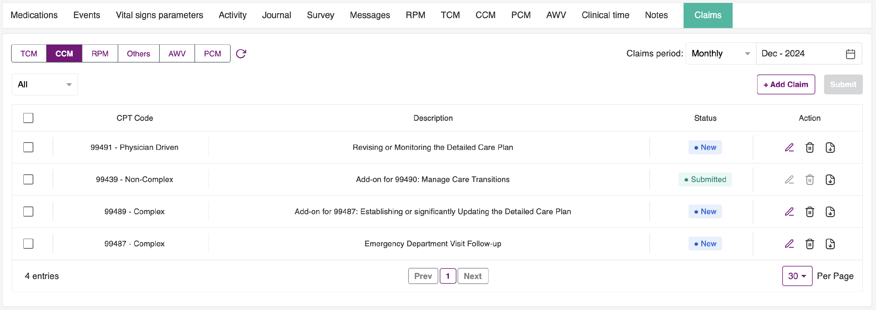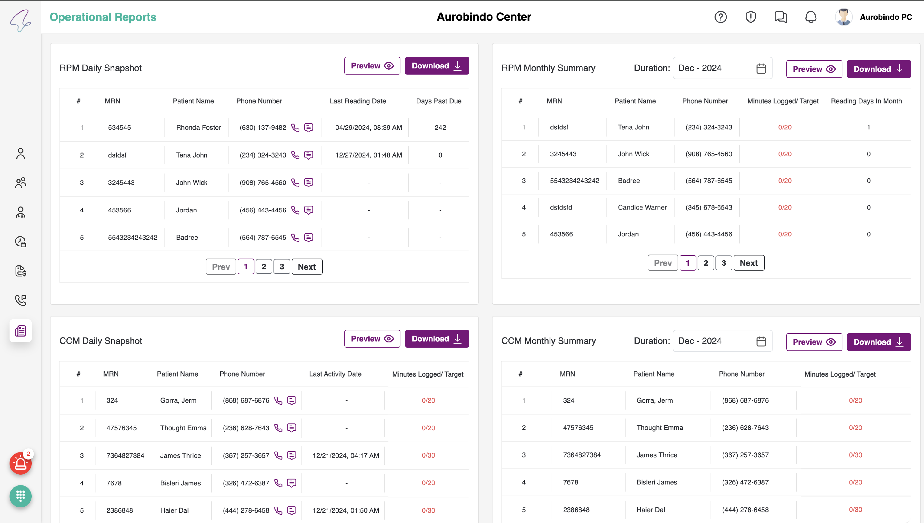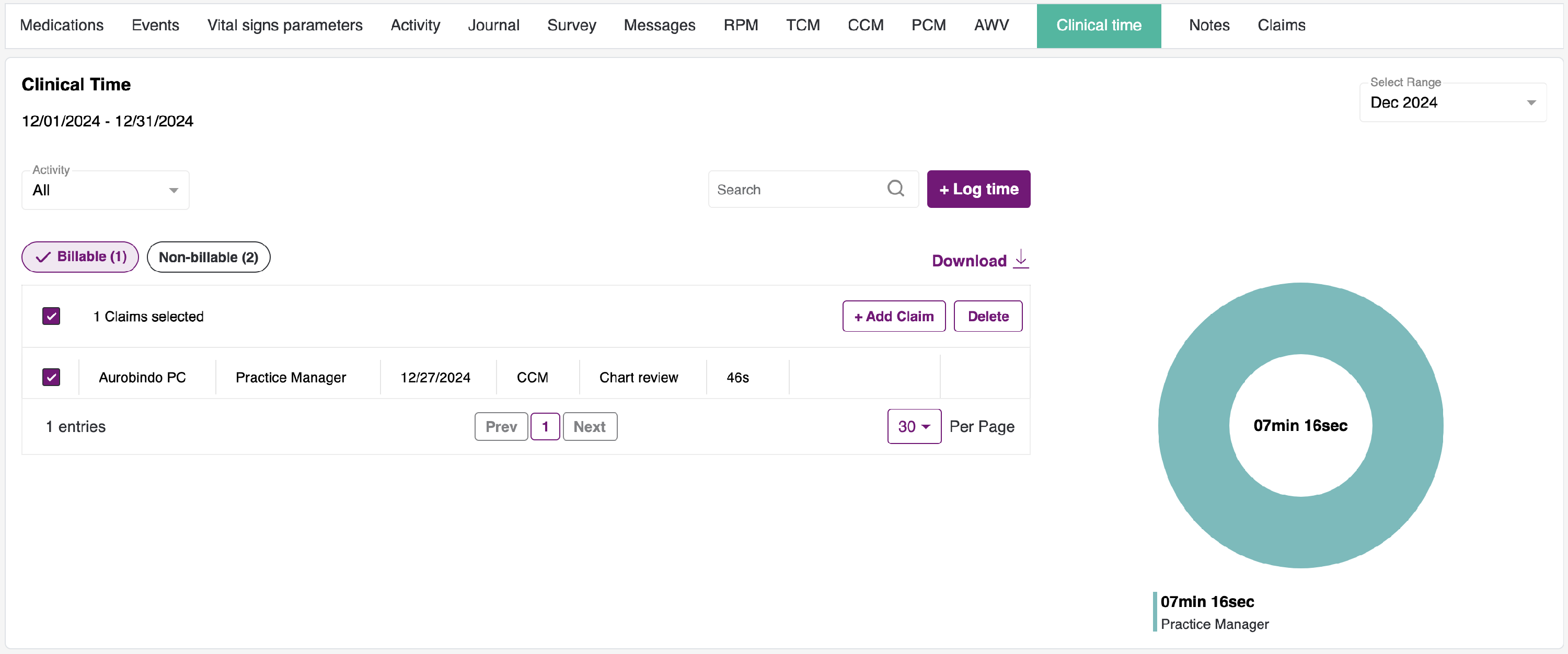In this operational report, we can observe both CCM, RPM and PCM records based on clinical time.