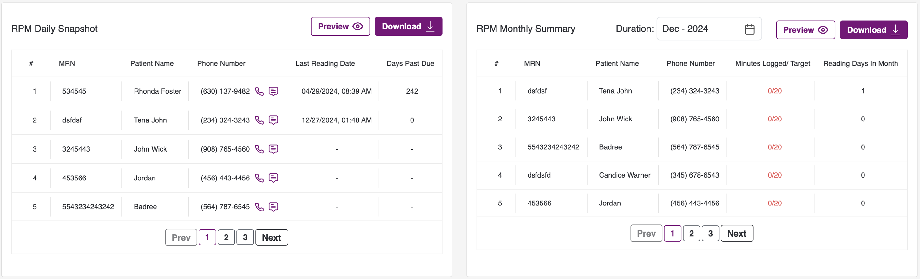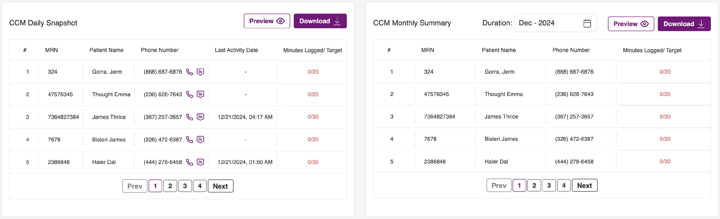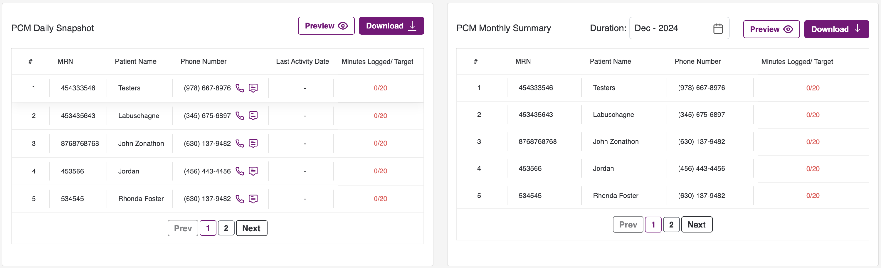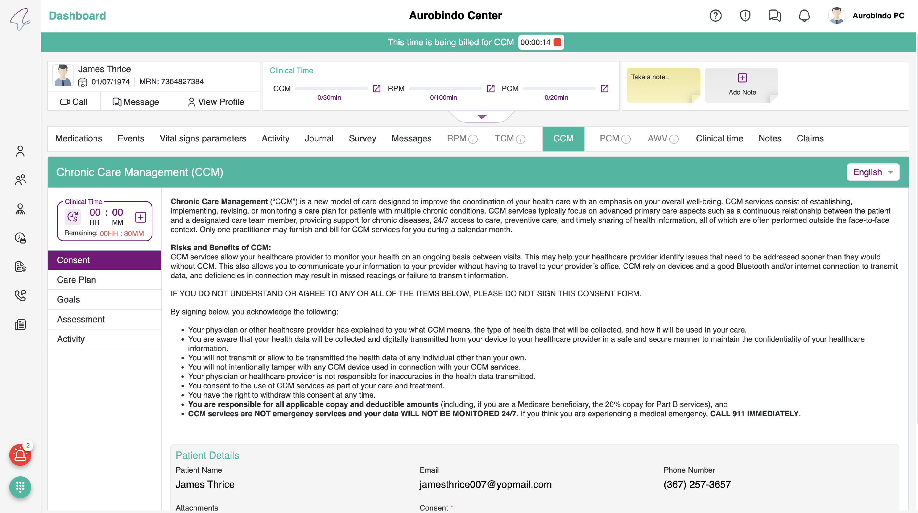 if needed can also bill for PCM or CCM by just clicking on the Patient Name or Patient MRN of any particular record. if you click that in PCM snap short or summary it will start billing the patient in PCM else if you click that in CCM snap short or summary it will start billing the patient in PCM.