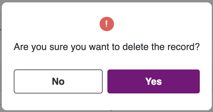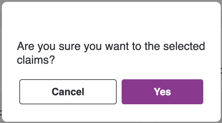 Claims can also be deleted based on the record by clicking on the delete icon of a particular record. Once the Delete icon is clicked, a pop-up will appear asking for confirmation. Click "Yes" to delete or "Cancel" to close the pop-up.