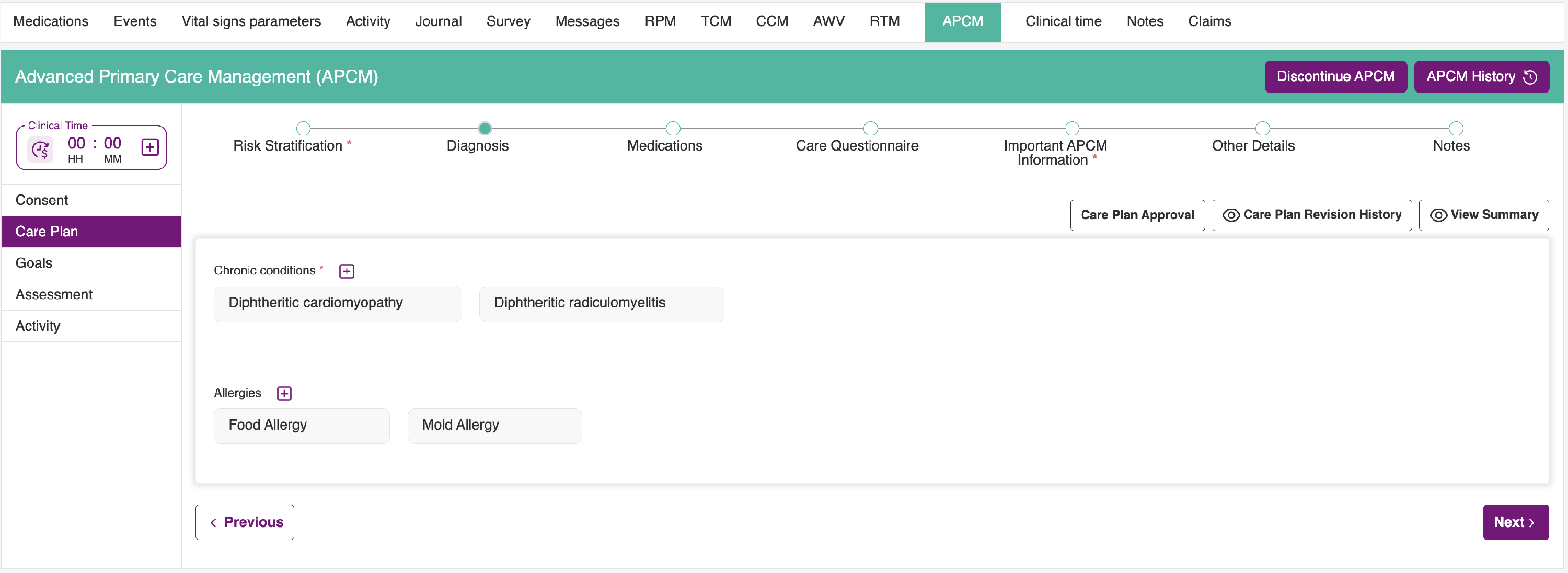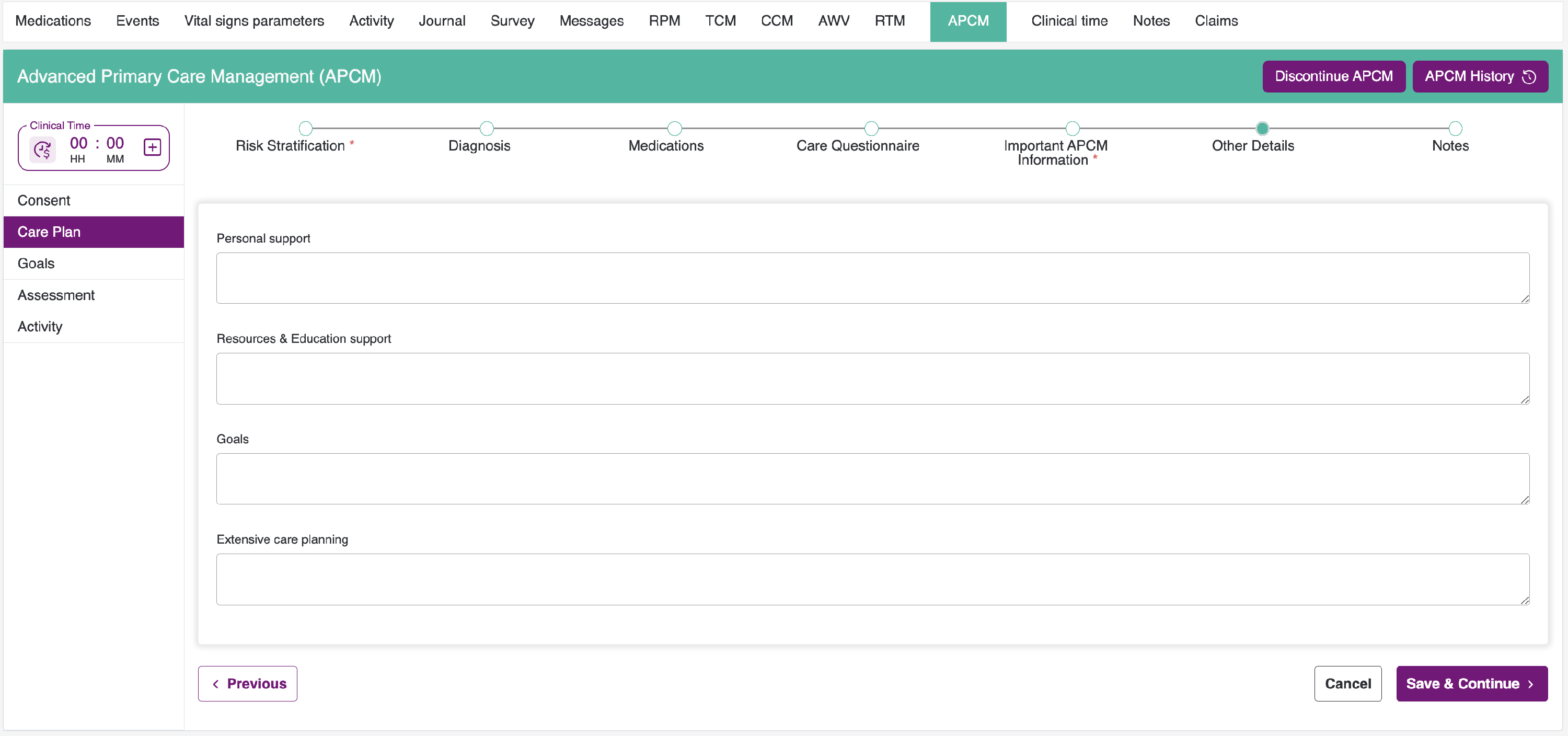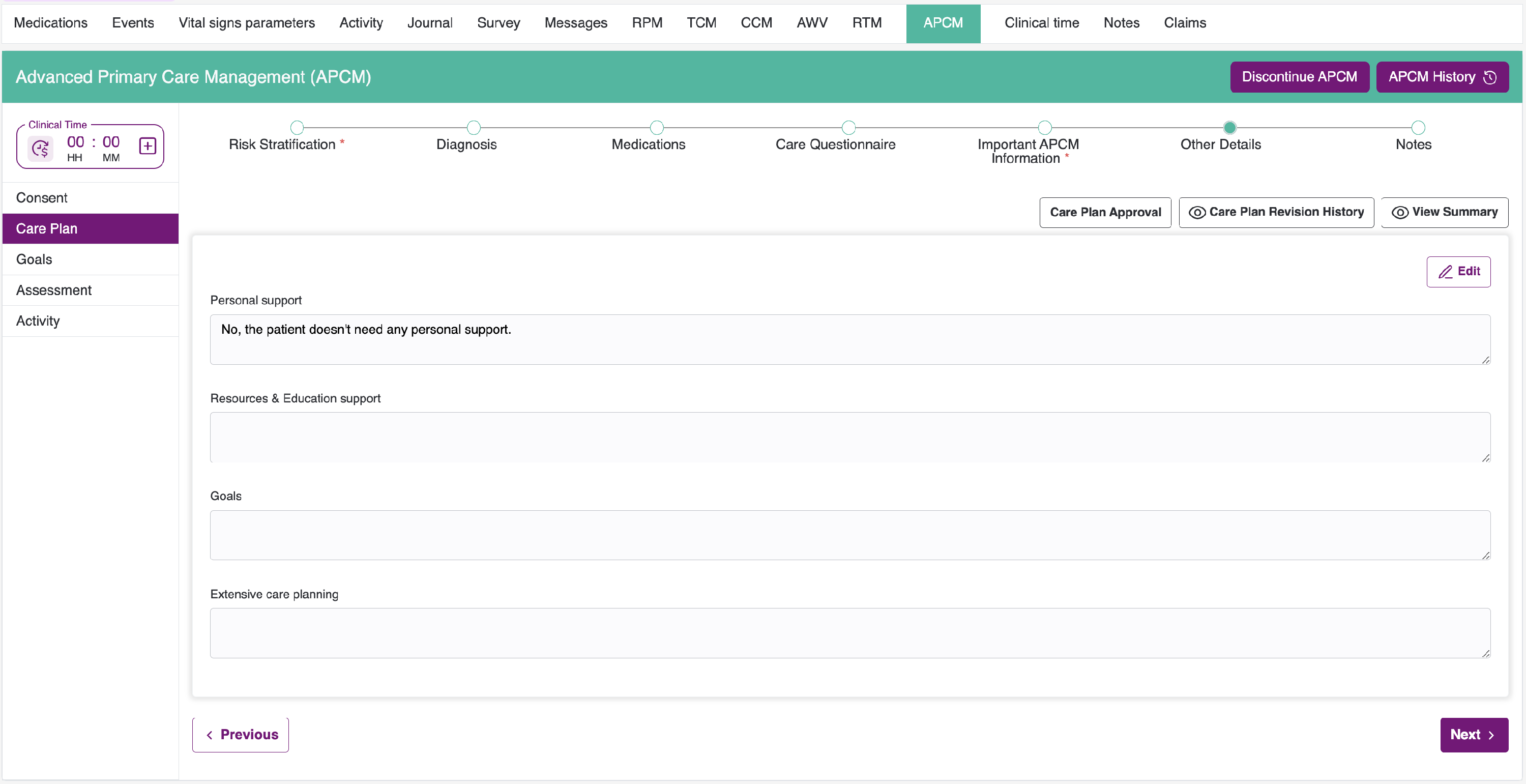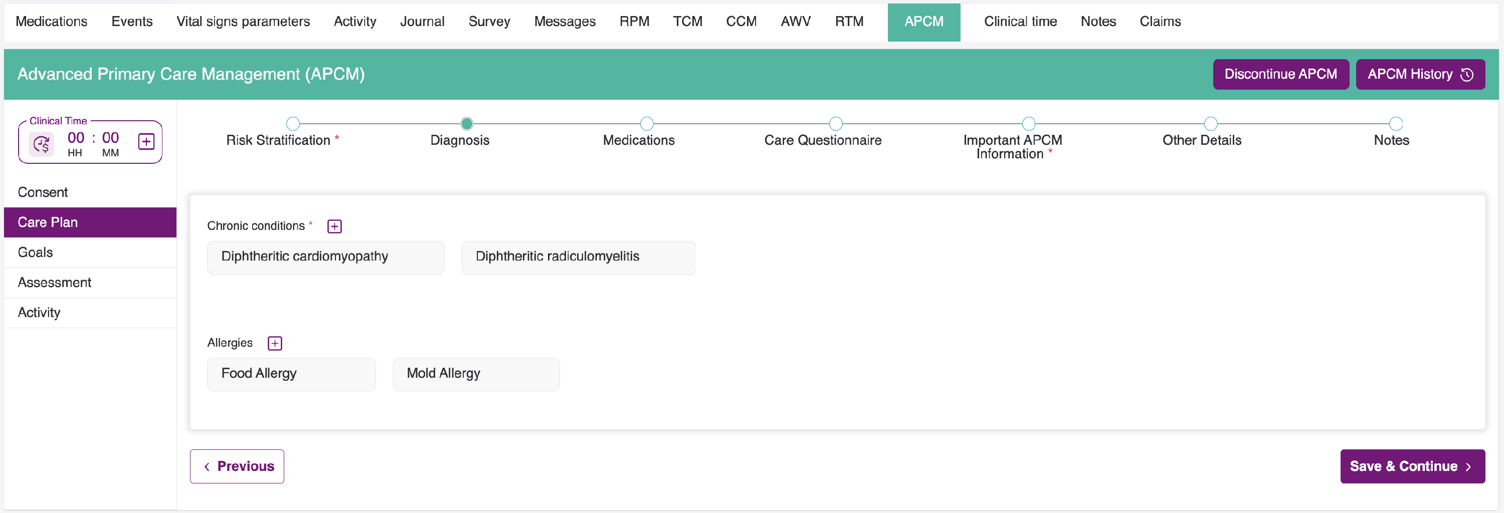 Note: If you choose to migrate the CCM care plan in APCM, then whatever data you have filled will be autofilled, and the rest of the required fields should be filled manually in order to submit the care plan.
