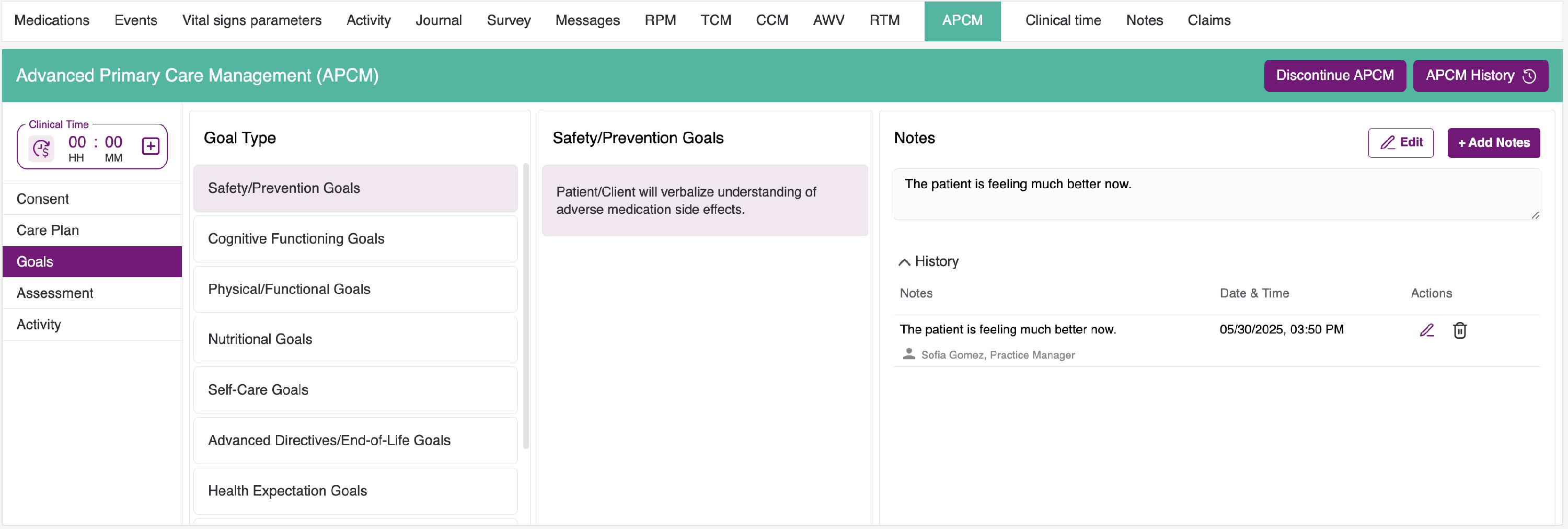 Important Note: If you have migrated the care plan, then the CCM care plan goals will be migrated with the respective added comments for the goals.