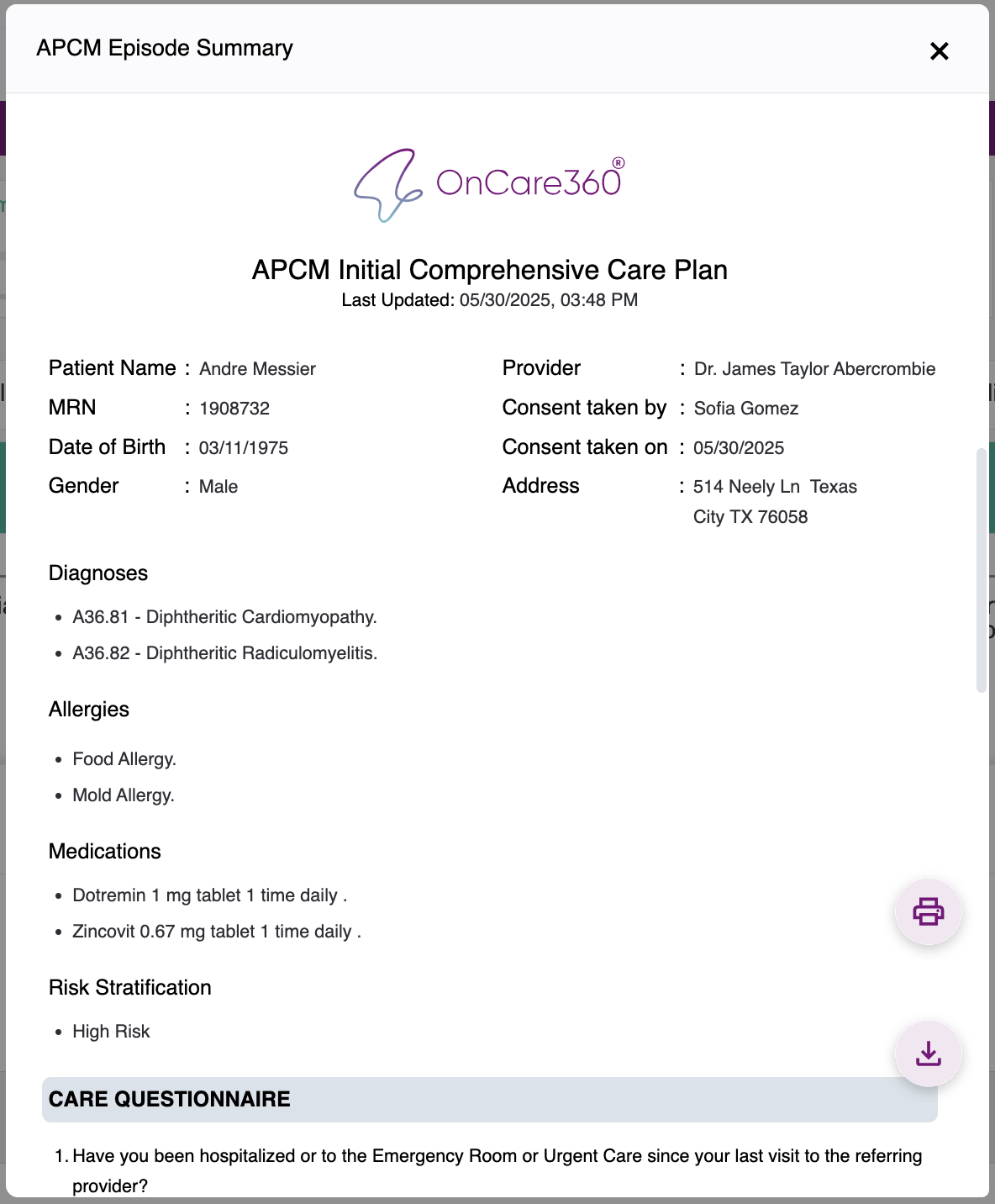 - Upon clicking the download icon, you will be able to access the Summary of the APCM Episode. Additionally, you can download it by clicking on the floating download button or use the print button to print the PDF.