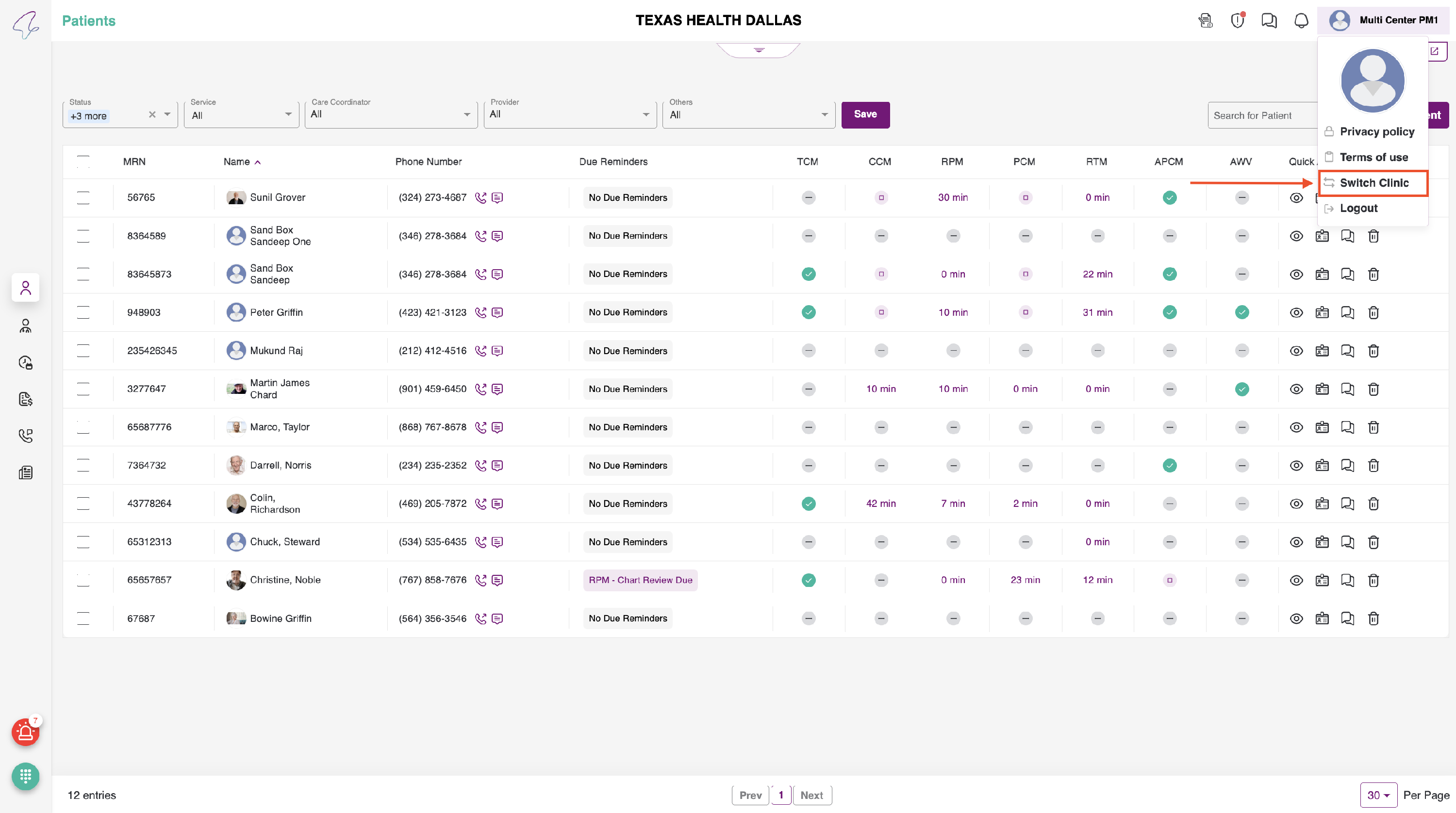Note: You’ll be taken to the selected clinic’s Patient Listing Page.