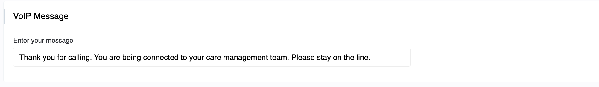 You can customize the VOIP Greeting message from your center. By default, there is a standard text message. If you want to change it, you can edit the text to meet your specific requirements.